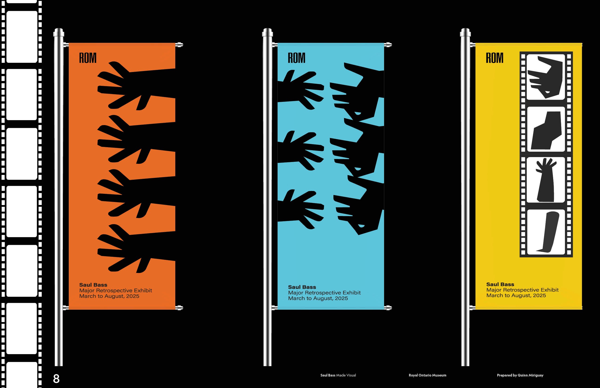 I was tasked to produce a print exhibition proposal that reflected the style of a chosen designer. Saul Bass as he is a massive inspiration for me with his bold graphics and timeless corporate logos. Bass is known for his title sequences, so I decided to focus on his logo designing career and how he ran his own logo design firm. Tying in his work in films, I added segments of his title sequences Anatomy of a Murder and The Man with the Golden Arm as to break from the refined typography and highlight his simple yet effective logos.